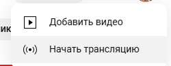 - Нажмите на иконку «Создать» в правом верхнем углу и выберите «Начать трансляцию».
