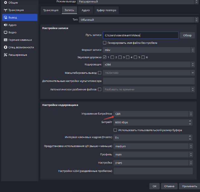 - Управление битрейтом: Установите CBR (Constant Bitrate). Это обеспечит стабильную отдачу потока.