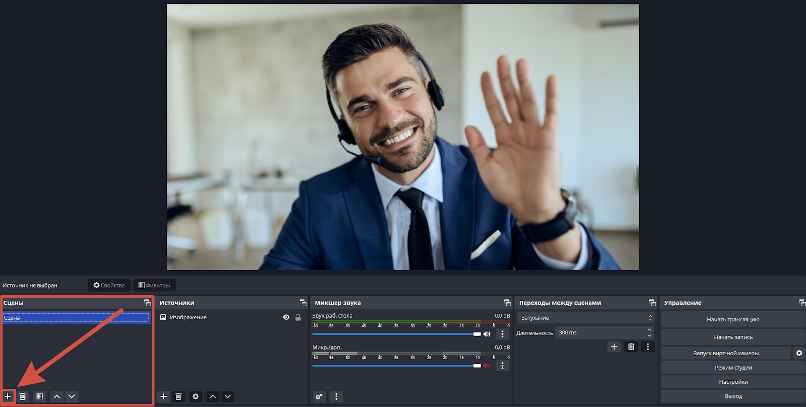 - Настройте сцены в OBS: Добавьте источники — веб-камеру, захват экрана, изображения, видеофайлы.