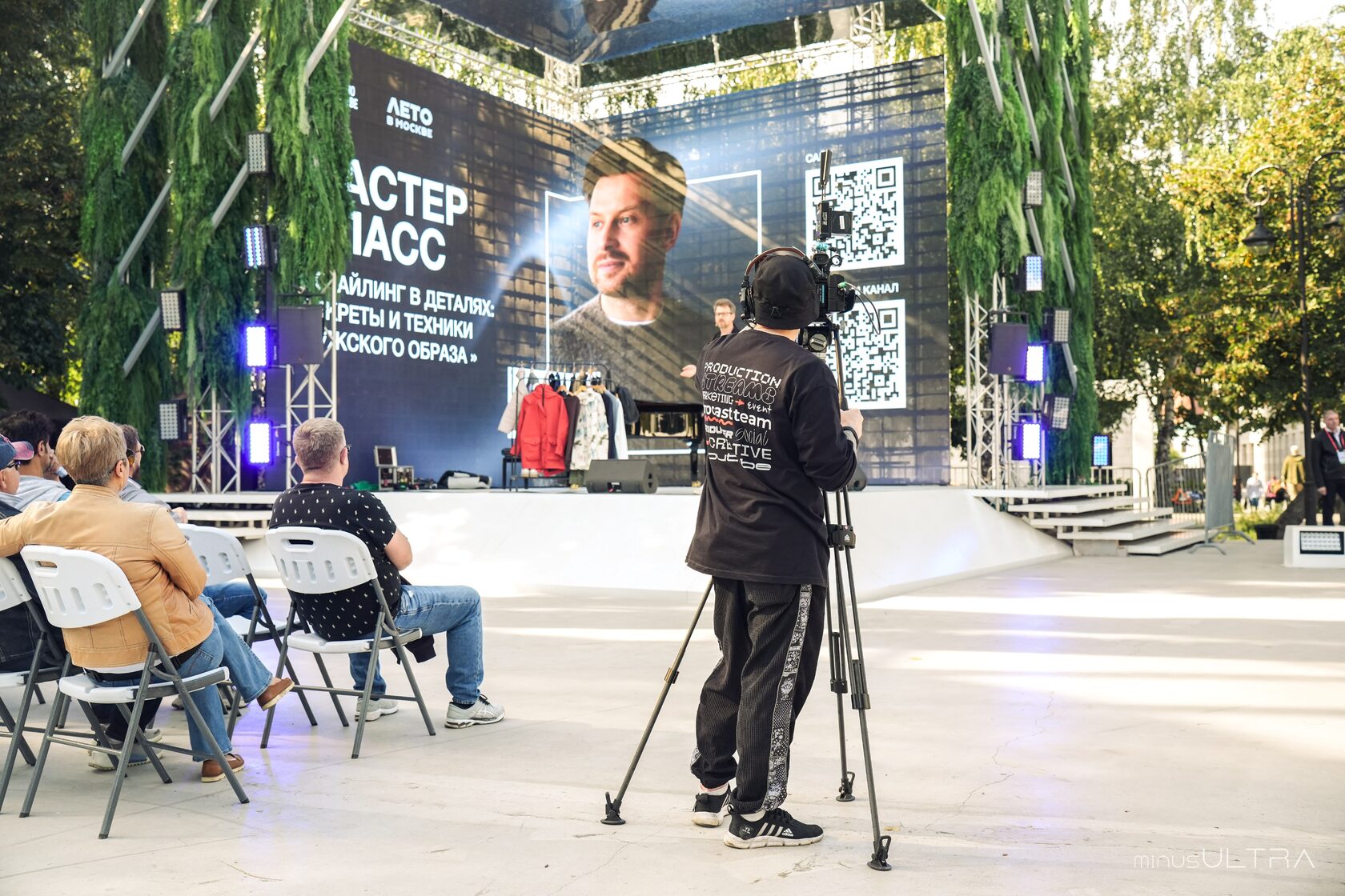 - Многокамерная съемка с акцентом на мобильность. Мы использовали сетап из трех камер. Две из них были подключены по беспроводным радиоканалам, что давало операторам свободу перемещения для съемки самых динамичных и интересных ракурсов. Чтобы исключить любые риски, связанные с потерей сигнала в условиях многолюдной площади, мы внедрили систему дублирования радиоканалов. Это гарантировало стопроцентную стабильность передачи видео.